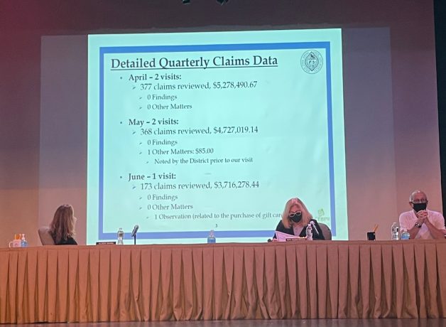 Shari Diamond, partner for Cerini & Associates LLP, the district’s claims auditors, gave the firm’s findings on payments made from the general, trust and agency, school lunch, federal, and capital funds accounts for the quarter.
