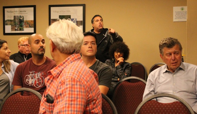 After more than half a dozen people spoke about specific situations, including architects with plans for homes as well as residents looking to possibly renovate, the crowd grew unruly after East Hills resident Ramin Emouna asked trustees why no letters were sent to residents about the public hearing.