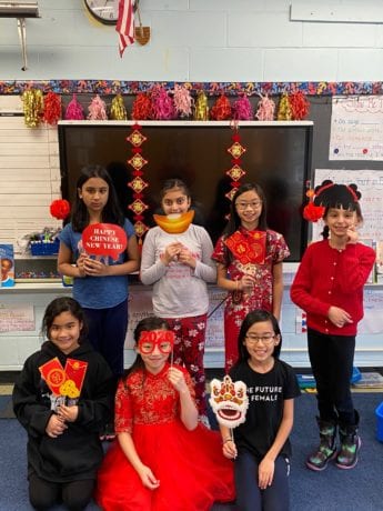 Families in Darlene Utz’s fourth-grade class at Searingtown Elementary School came together to plan for and celebrate the Lunar New Year. Many parents contributed to an exciting and educational event for students in various ways.