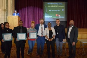 To conclude the ceremony, McLees announced the New York State Scholar-Athlete Team Awards. The recognized teams were: Elmont Memorial’s girls soccer, boys and girls volleyball, and boys and girls cross country; Floral Park Memorial’s cross country, girls soccer, boys and girls volleyball, and cheerleading; H. Frank Carey’s football, boys and girls soccer, boys and girls volleyball, cross country, and cheerleading; New Hyde Park Memorial’s cross country, boys and girls volleyball, boys and girls soccer, field hockey, girls tennis, and cheerleading; and Sewanhaka’s boys cross country and boys and girls volleyball. The fall district teams that received the award were boys golf, girls swimming and field hockey.