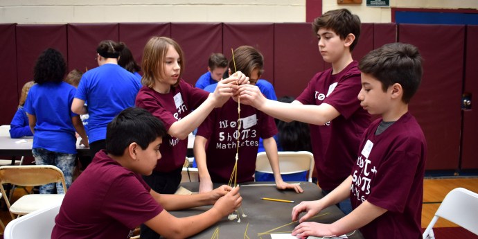 This day of exciting competition and camaraderie was a major event, comprising several rounds of competition. In the STEM Challenge, teams of five from each school competed in a design and engineering challenge. Students reported that the successful teams on this challenge needed to demonstrate strong collaboration and communication skills, as well as creativity. There were also three rounds of competition that involved solving unconventional math problems: an individual round, a team round, and a mixed team round, where students were grouped with peers from other schools and needed to quickly form collaborative relationships in order to prevail.