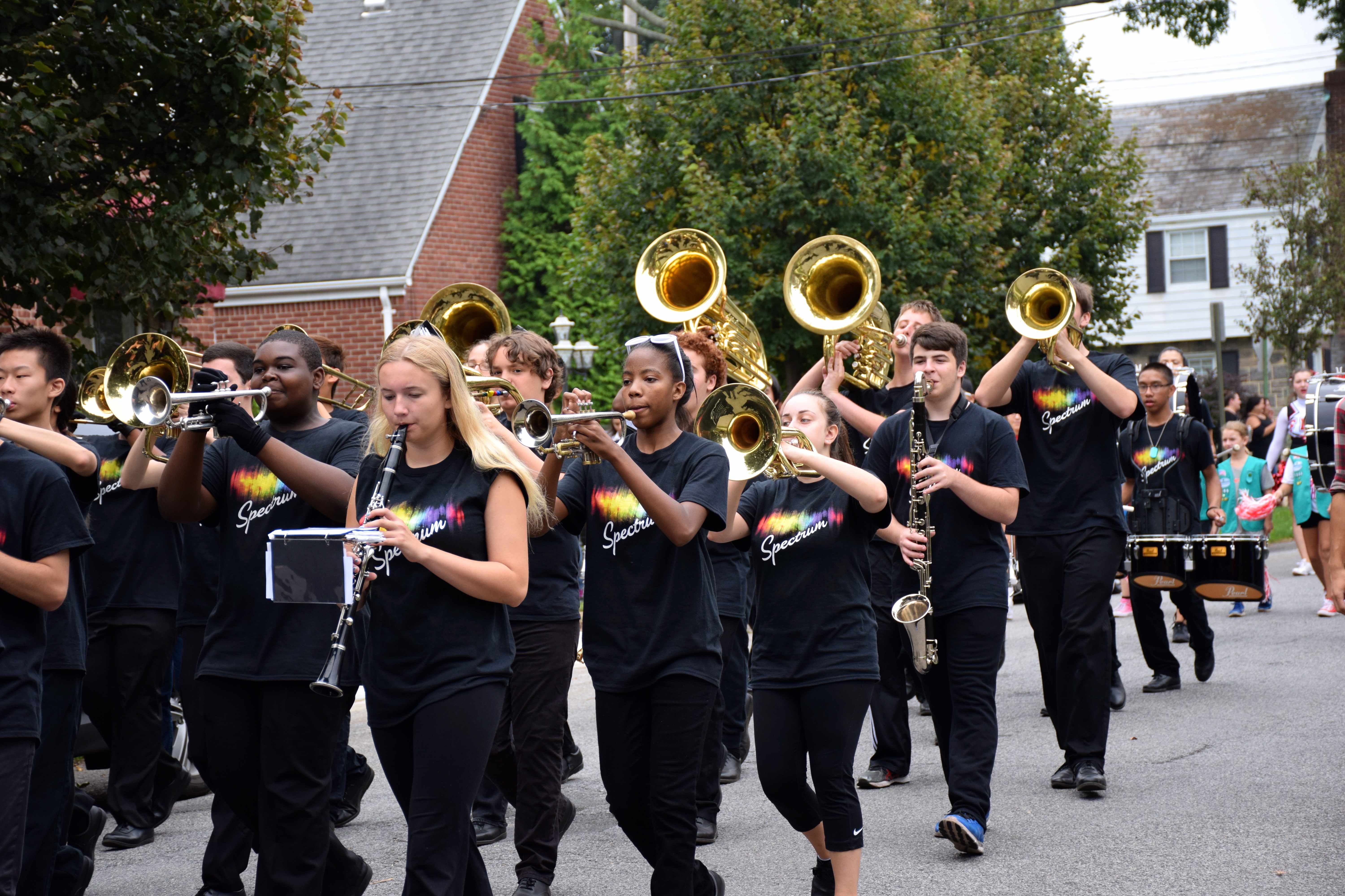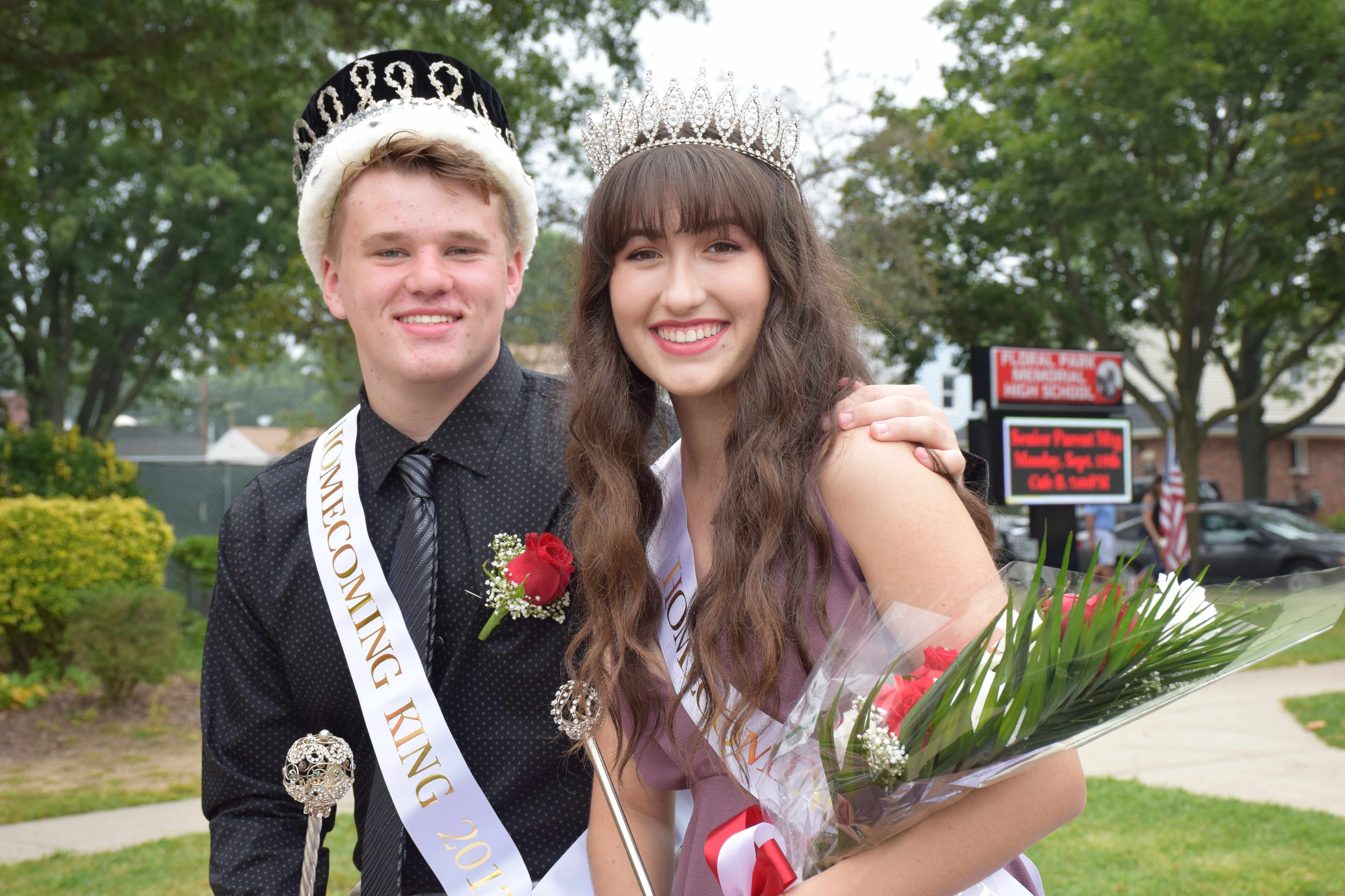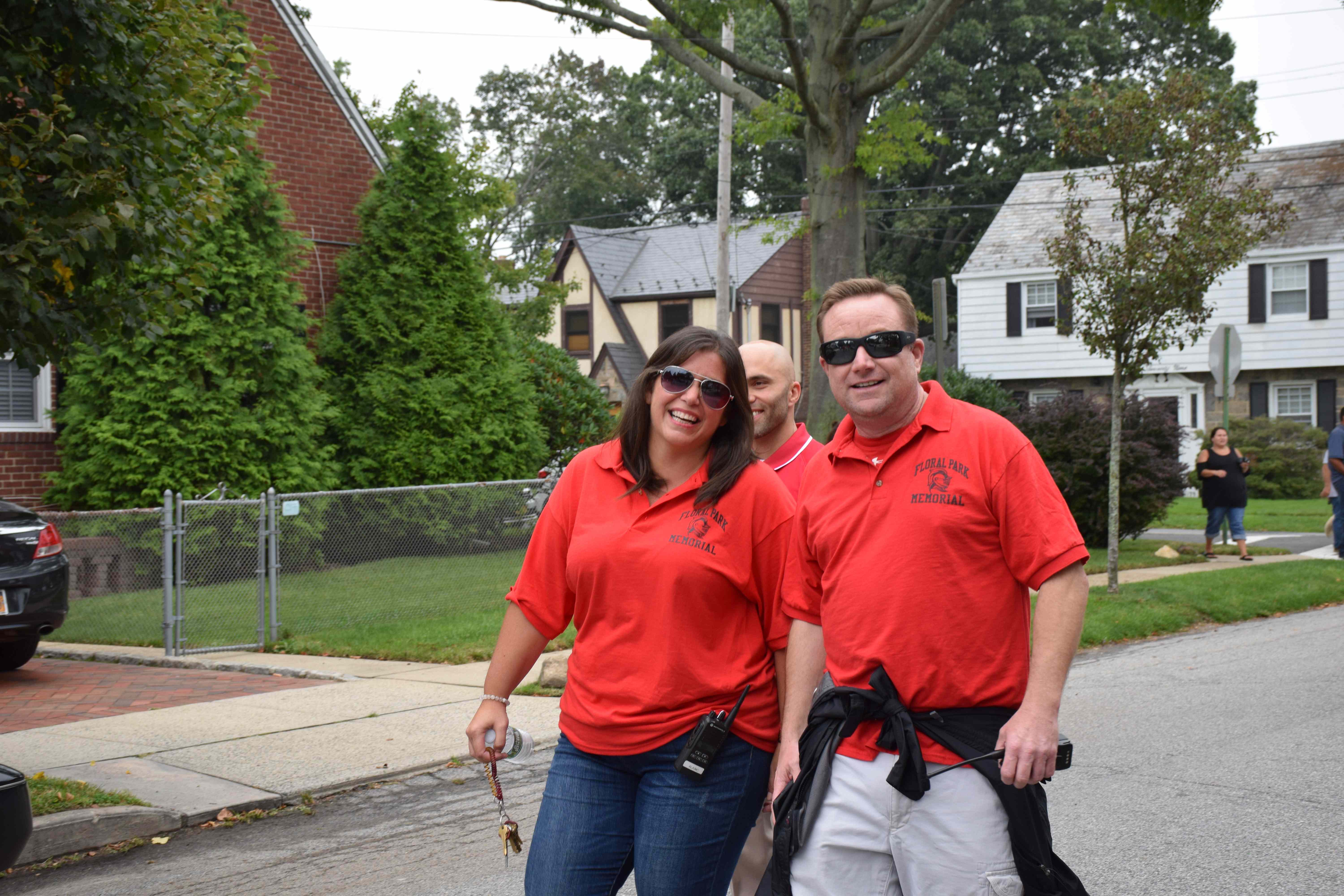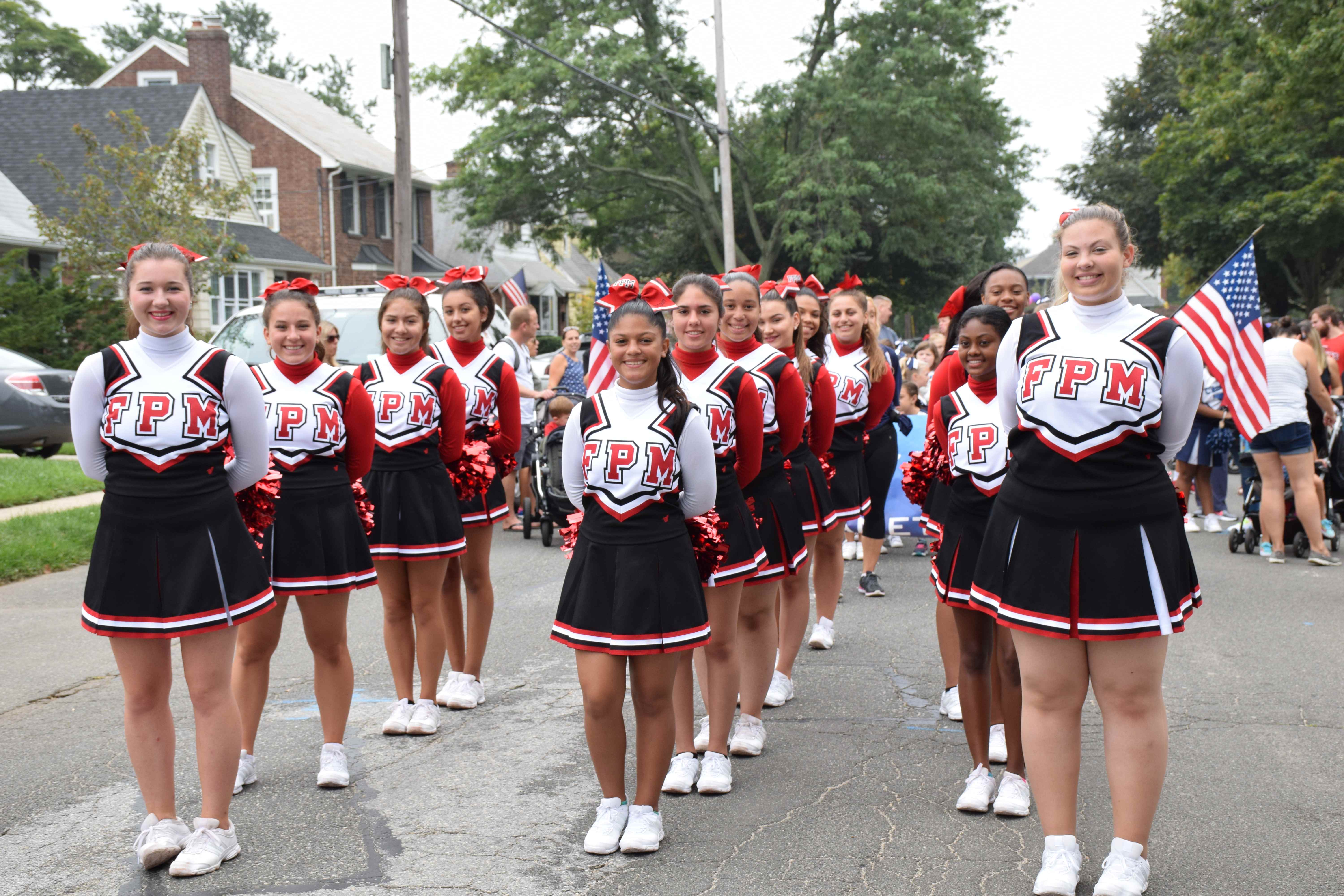 Grand Marshal Brian Sharkey, former Floral Park Memorial assistant principal, led the parade. Members of the color guard, administrators, students, cheerleaders and Florettes followed, showing off their school spirit as they kept in beat with the marching band. Homecoming king Ryan Scheer and queen Trinity Compton and other members of the homecoming court received driven escorts for the event and waved to parade-goers who lined the streets.