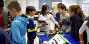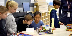 As a culmination to their work, fourth-grade engineers shared their buildings and cities with the first-grade students, who are currently beginning their own FIRST LEGO League Jr. Challenge, called “Mission Moon.”