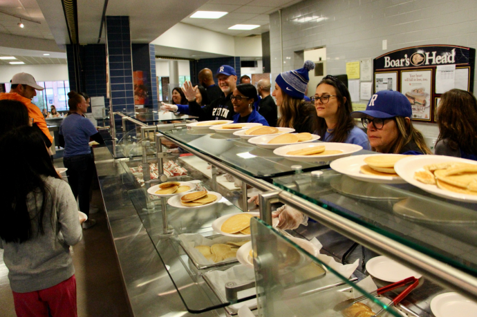 Homecoming Day was the culmination of Spirit Week—a weeklong spirit-building initiative designed to build excitement for the big game. A robust schedule of games in a variety of sports led up to the football event on Saturday, which kicked off with the annual pancake breakfast at 11 a.m. in the Roslyn High School cafeteria—served up by Roslyn administrators and staff.