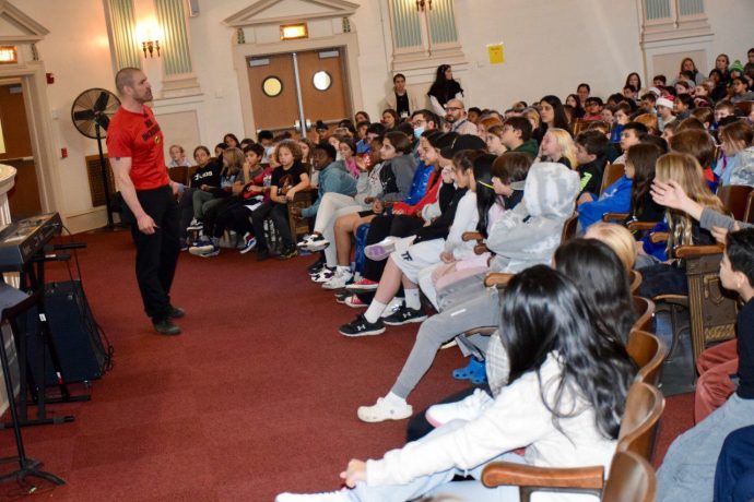 Floral Park-Bellerose School students learned about anti-bullying tactics and the importance of hope and empathy during presentations by Sweethearts & Heroes. The motivational speaking organization educates on the impact of bullying and aims to build compassion through programs, presentations and online courses.