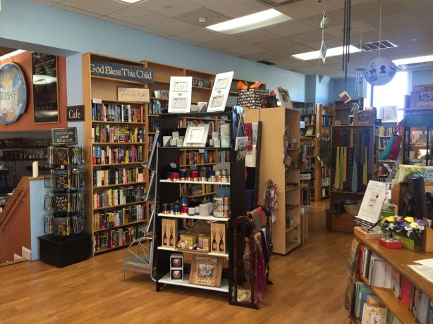 The store is broken into three sections. One section is for children, with age-appropriate books and toys to choose from. Another section is for adults, providing books, gifts and cards. The last section is a small café with drinks and treats.