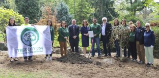 Town officials join M.T.O. Shahmaghsoudi for Earth and Arbor Day tree...