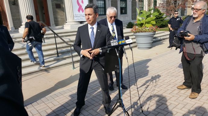 State Sen. Jack Martins (R-Old Westbury), also a candidate for the 3rd Congressional District, calls on Nassau County Executive Edward Mangano to step down following his arrest Thursday on federal corruption charges.
