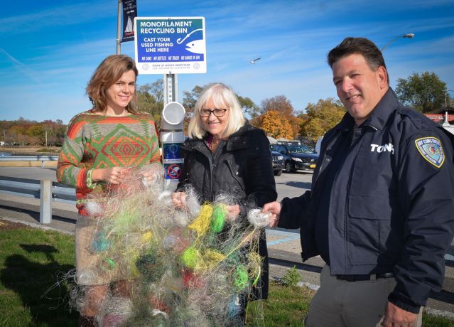 Town of North Hempstead Supervisor Judi Bosworth, Chief Sustainability Officer Erin Reilley and Chief Bay Constable Mal Nathan recently announced that throughout the past year, the town has collected over 12 cubic feet of monofilament fishing line from receptacles located in six town parks.
